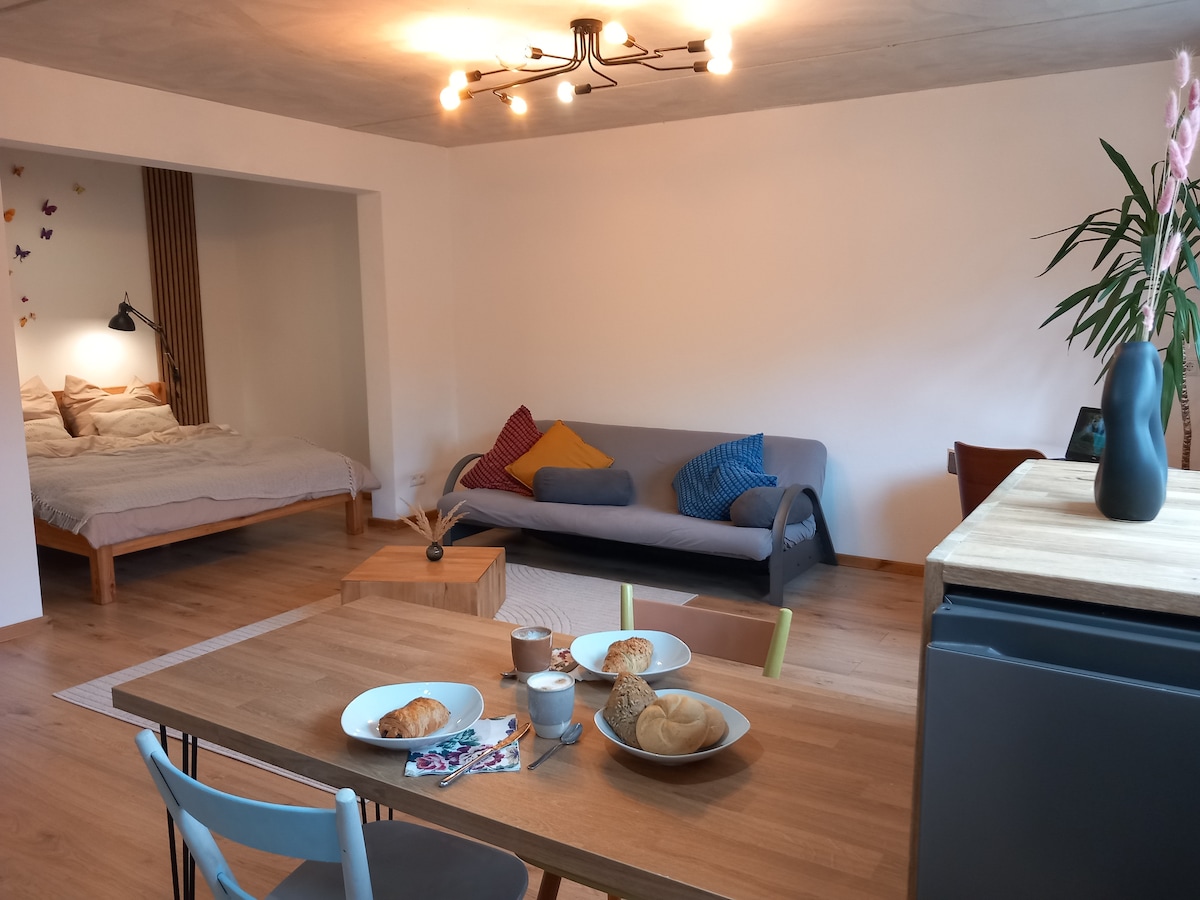Siyakwamukela endlini engasechibini Phumula futhi ujabulele ikhefu lakho efulethini lethu elisanda kulungiswa, elisenkabeni ye-Steigerwald ebabazekayo. Hlola imizila yokuqwala izintaba ehlaba umxhwele - ngaphandle nje komnyango wangaphambili. Imvelo inikeza ukuthula, ukuthula nokuthula futhi. Jabulela umoya ohlanzekile nezinyoni ezibhongayo njengoba uzulazula endaweni ehlanzekile. Shiya ukuphila kwansuku zonke futhi ujabulele isikhathi esingenakulibaleka e-Steigerwald.