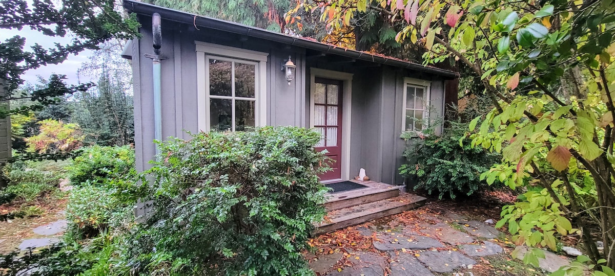 Istudiyo esithulile, esihlanzekile, esizimele esingu-400 sf ekhaya lesimanjemanje elinendawo yokugezela ephelele, ikhishi, indawo yokungena ephrayivethi nendawo yokupaka evikelekile eneshaja ye-EV. Ifenishiwe ngokunethezeka ngebhedi eliyi-queen elilodwa, usofa ogcwele wokulala, ideski lasehhovisi, isikhungo semidiya, ifriji elinesipheki seqhwa, isitofu, ishawa engenaso isitebhisi, i-bidet, umshini wokuwasha nowokomisa. Iminyango emikhulu yengilazi eslayidayo eya kuvulande nemithi yomsedari, yemadroni ephakeme ngo-150'. Ukungena kalula ngaphandle kwezitebhisi. Amanzi afudumele akhazimulayo, phansi kukakhonkolo ofudumele, i-AC nomoya omningi.