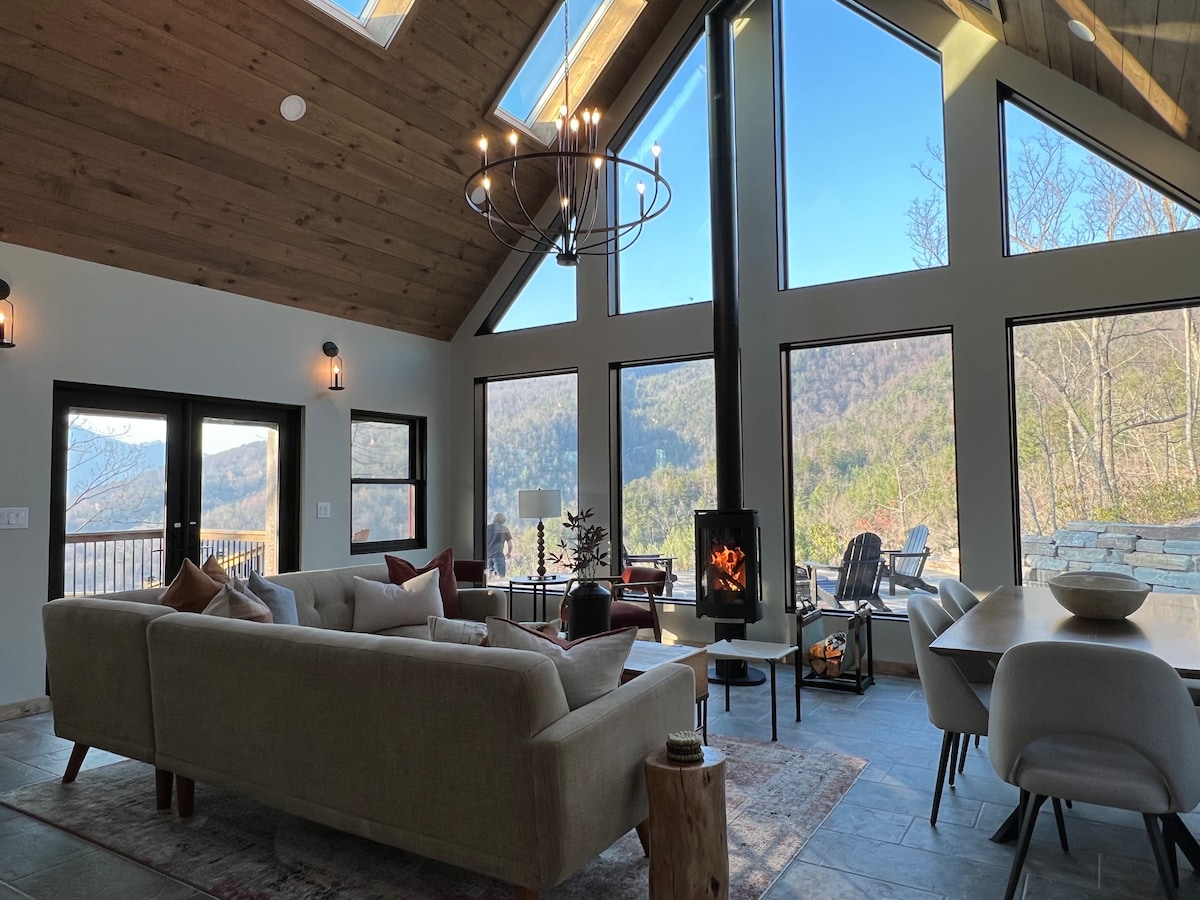 Jabulela indlu yethu eyakhiwe ngamapulangwe emangalisayo w/ubhavu wamanzi ashisayo omusha. Ibekwe kahle kumahektare amahle angu-12 anamapulangwe, indawo ezungeze umpheme w/ama-rocker amaningi, umgodi womlilo nendawo yokungena eyakhiwe ngamapulangwe ephrayivethi. Kusezansi nje komgwaqo osuka e-Blue Ridge Pkwy, e-Linville Falls Winery & Caverns kanye nemizila ehamba phambili yokuqwala izintaba & i-Ski Slopes NC! Phuza i-cocoa eshisayo ngasemgodini womlilo onendawo enhle noma indawo yomlilo kule ndlu eyakhiwe ngamapulangwe ethokomele. I-Wifi esheshayo (Starlink) nendawo ehlanzeke kakhulu! Ngeke uphoxeke!