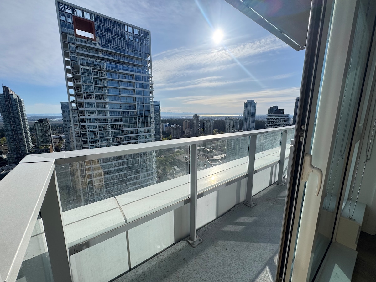 Iyunithi enhle enedolobha elihle kakhulu, intaba, ukubuka umfula futhi isendaweni ekahle futhi izungezwe yizo zonke izinto ezidingekayo. Indawo yokungena eqondile nevikelekile ngaphakathi esakhiweni eya eziteshini ze-skytrain, emabhasini, emabhange, ezinema, ezitolo eziningi & ezitolo zokudlela. I-skytrain eqondile eya e-BC Place Stadium ye-FIFA World Cup, i-Science World, i-Rogers Arena, i-Downtown, i-Metrotown. Vele ugibele i-skytrain bese uqala ukuhlola i-Surrey, i-Vancouver, i-Yaletown, i-Olympic Village, i-Lonsdale Quay nezindawo ezizungezile ngaphandle kwesidingo semoto.