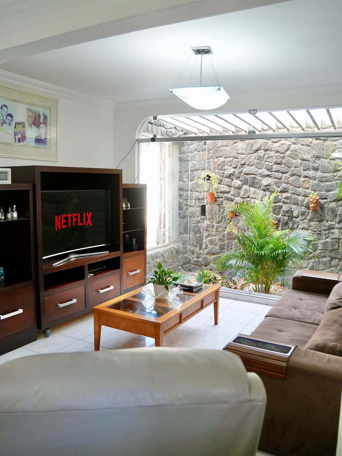 Lena yi-Casa Áurea! Ngivula ikhaya lami ukuze wena nomndeni wakho nibe noKhisimusi omuhle kakhulu, amamitha angu-100 ukusuka esihlabathini sase-Ponta Negra, ngombono omuhle wolwandle ne-Morro do Careca, kanye nokulula kwe-TV yekhebula (ama-intshi angu-65, 55 no-39) ne-inthanethi.