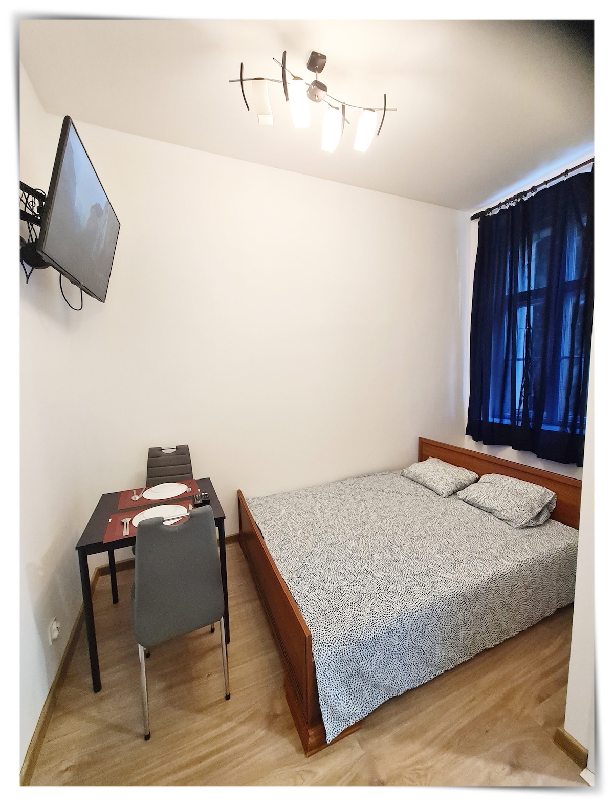 Nasz przytulny apartament znajduje się w zrewitalizowanej kamienicy na 3 piętrze. Jest po kompleksowym remoncie, w apartamencie znajduje się więc wszystko czego potrzeba gościom. Poza przestronnym wnętrzem salonu, do dyspozycji jest korytarzyk z zabudowaną szafą. Ponadto bogato wyposażony aneks kuchenny. Znajdziecie tu Państwo też niezbędne sprzęty. Na uwagę zasługuje drewniana podłoga oraz balkon z kutą balustradą. W oknach znajdują sie rolety. Parking płatny tylko 8-17, w weekend bezpłatny.
