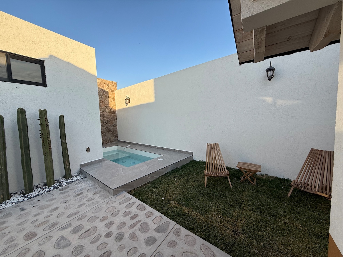 Phumula kule ndawo ethulile nenhle, egcwele impilo nengadi yayo enhle, i-jacuzzi yayo yokuphumula, ithelevishini ekhangayo engu-75-inch egumbini, ukubona amabhayisikobho akho owathandayo nochungechunge. Futhi itholakala kahle kakhulu ukujabulela i-Tequisquiapan kanye nendawo ezungezile ngokugcwele, njengezitolo zayo zikashizi, izivini, ibhaluni lomoya oshisayo, ama-ATV, amahhashi, izindawo zokudlela, amabha kanye nokuvakasha. Qiniseka ukuthi uvakashela i-Peña de Bernal, izimayini ze-opal, njll.