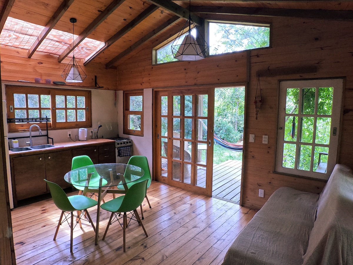Cabaña ubicada en medio de monte de pinos, rodeada de naturaleza y tranquilidad. Lugar ideal para descansar y desconectar. Podrás recorrer los hermosos paisajes de alrededor, ir a la playa y conocer nuestra huerta, a demás ofrecemos el servicio de desayuno, todo hecho en casa y con cositas de la huerta.