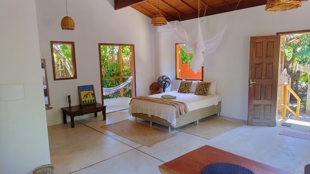 I-Bungalow yethu enhle nethandekayo yonke yakhiwe ngamapulangwe, phezu kwedune yesihlabathi ebheke olwandle. Itholakala ngendlu engasolwandle engu-100m, i-Fazenda Maison okuyindawo ephrayivethi engamahektare angu-14. I-A/C ihlukaniswe i-Inthanethi wWifi 300 MBps fibre optic Isevisi yokuhlanza ifakiwe nsuku zonke Umbhede omkhulu owusayizi oyingqayizivele wendawo yokusebenza-desk obheke olwandle I-shower yengadi yangaphandle yangasese Indawo yokubhukuda (ehlanganyelwa nezindlu ezintathu). I-BBQ ichibi, ihlanganyelwa nenye indlu. Ama-Kayaks, i-prancha de surf, inflaveis...mahhala