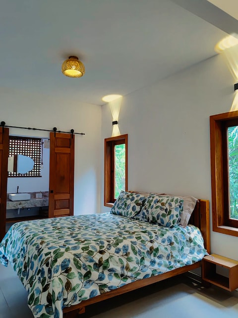 Yindawo ezolile nenesitayela engamamitha angu-200 ukusuka ebhishi, phakathi kwezitshalo zomdabu! Sinobungane be-LGBTQIAP+ futhi, ngenxa yokuthi asikho enkabeni yomphakathi, sijabulela ukuthula nokuzola kodwa imizuzu emihlanu ukusuka ekuxakekeni! Ikamelo elibheke ezihlahleni liyisiqinisekiso sokuphumula. Ikhishi elinosilingi we-piaçava lihle futhi lilungiselelwe okudingekayo. Indlu yokugezela inezindawo eziphrayivethi eziqinisekisa ukusondelana kwakho. Phumula kule ndawo! Uzoyithanda!