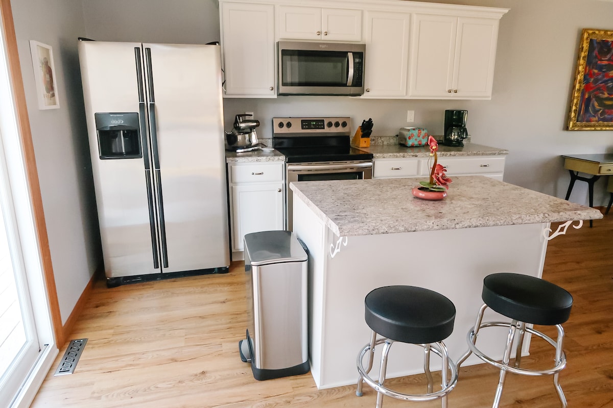 Umndeni wakho uzoba seduze nakho konke uma uhlala e-Aire Leclaire! Ngebanga lokuhamba ngezinyawo ukusuka edolobheni namabhlogo angu-2 avela ku-American Pickers. Leli kamelo lesimanje elingu-2, ikhaya lokugeza elingu-1 liqhelelene nomzila wombukiso ohamba phambili. Indlu eyakhiwe ngamapulazi eyakhiwe ngo-1940, leli khaya lalungiswa kabusha ngokuphelele ngobuhle basepulazini besimanje abanalo namuhla. Edolobheni usuku olulodwa noma eziningana, jabulela amasevisi angaphandle, umpheme okhanyayo, usofa wangaphandle, netafula. Ngaphakathi, indawo yomlilo yesimanje EHOLELEKILE nobuhle basemaphandleni.
