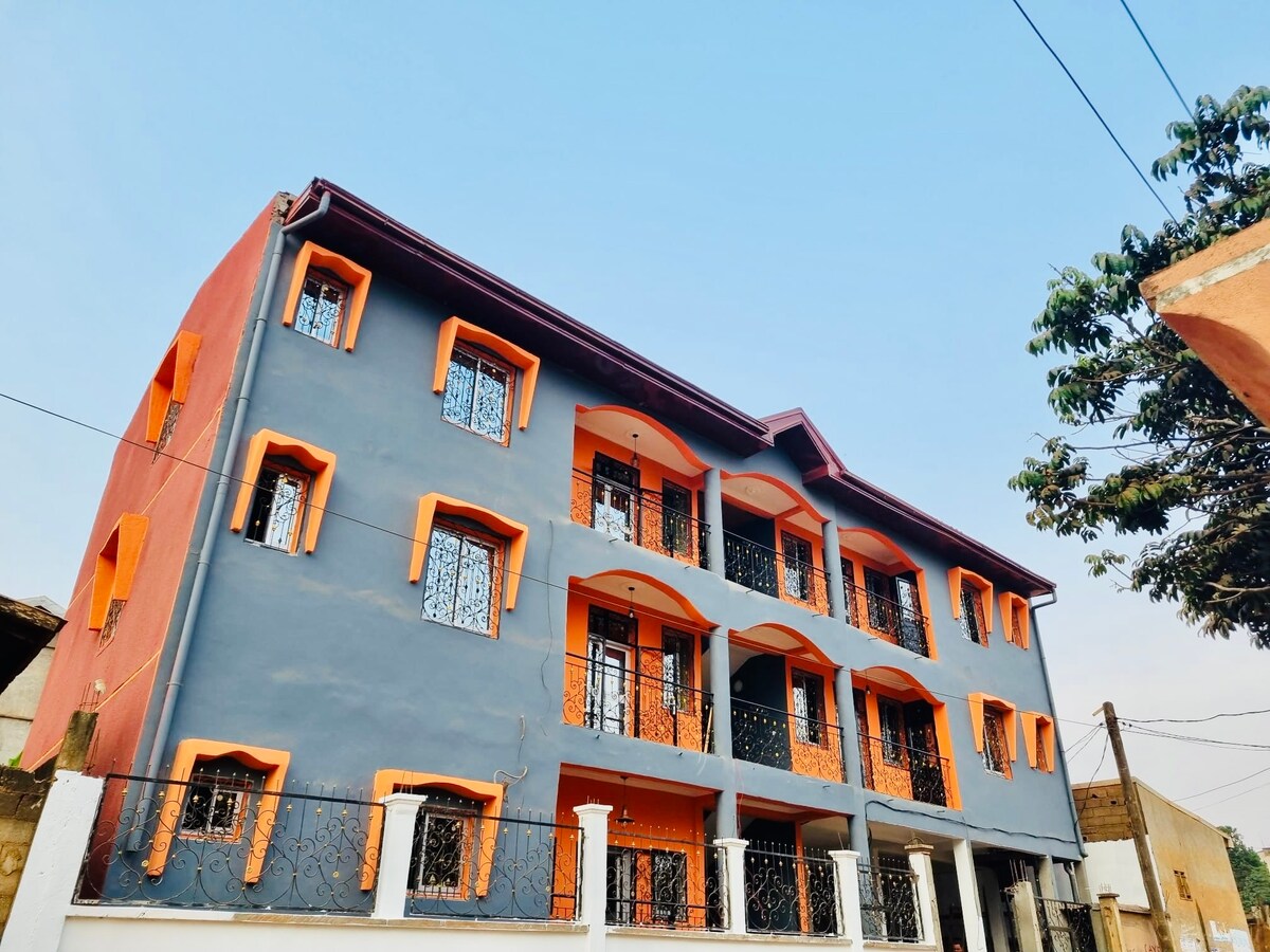 Siyakwamukela endaweni yethu yokuhlala efudumele nevikelekile e-Bonanjo, ihabhu lebhizinisi lase-Douala. Ilungele izivakashi zebhizinisi, eduze namabhange, izikhungo zokuphatha, amahhovisi ezempi, nezinkampani ezinkulu. Imizuzu engu-5 nje ukusuka esikhumulweni sezindiza, eduze ne-Autonomous Port. Thola imakethe yezimbali, isikhungo sezandla, isifunda sase-Bonapriso, namamnyuziyamu. Jabulela i-Wi-Fi yamahhala nokupaka, i-air conditioning yesimanje, izindlu zokugezela zangasese, nokuvikeleka kuka-24/7 ukuze ube nokuhlala okunethezekile.