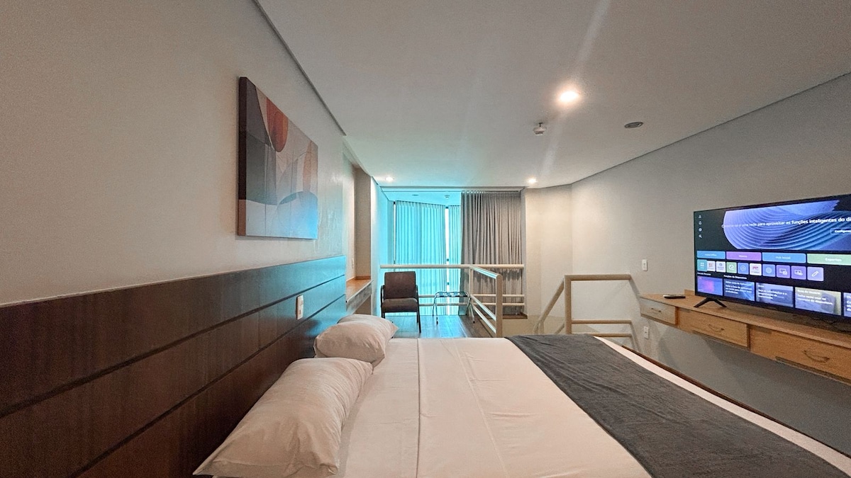 Indawo enhle, ukubukeka okumangalisayo nendawo evumelanayo. Yilokhu ozokuthola kule Studio, esitezi sama-21 sesakhiwo eside kunazo zonke eNhloko-dolobha. Kuzoba nethelevishini, ifriji, i-induction fogao, umbhede kasofa, ama-air conditioner amabili, ngaphezu kwakho konke okulula u-Vertigo angakunikeza kona: ijimu, izindawo zokubhukuda ezimbili esitezi sama-20, i-sauna nendawo yokudlela esitezi esiphansi. Woza ujabulele lokhu kuhlala, ujabulele usuku olunokuthula enhloko-dolobha i-Campo Grande.