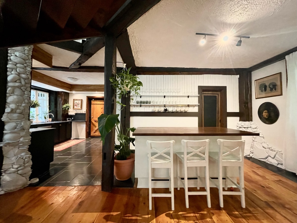 Relax in this truly Insta-worthy country house. Art meets nature with 70s boho vibes. Sleeps 8. Fully equipped kitchen, large open plan w/ 2 living rooms & wood fireplace (wood complimentary). Surround yourself with nature in comfort. Screened outdoor living/dining room with outdoor heaters. Large yard with BBQ & firepit. Wifi (Fibre Op), Smart TVs (w/Netflix, etc), board games, etc Less than 1 min drive to Mt. Cascades ski hill & water park. 10 min drive to Gatineau river public park.
