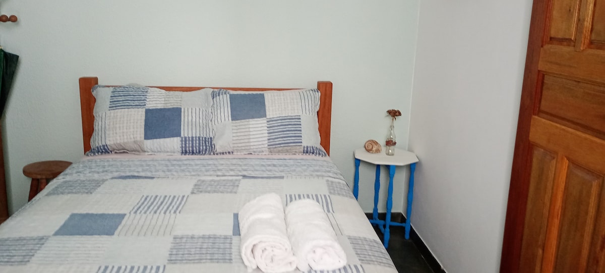 I-Suite Individual. Indawo yangaphandle ehlanganyelwayo. Ikamelo eliklanyelwe ukunikeza ukunethezeka nokusebenziseka. 👇🏻👇🏻👇🏻Izici👇🏻👇🏻👇🏻 * Umbhede omkhulu * Indlu Yokugezela Yangasese * I-Air-Conditioning 12,000 Btu/h - Ayinawo umoya * I-Wi-Fi yamahhala. * i-TV engu-32-intshi * Indawo yokupaka ephephile iyatholakala emotweni yakho. * Ukungena ngaphandle ekhishini elihlanganyelwayo nelinye ikamelo, elinazo zonke izitsha zokulungiselela ukudla kwakho.. * Ikamelo lisesitezi sokuqala, lifinyeleleka ngezitebhisi.