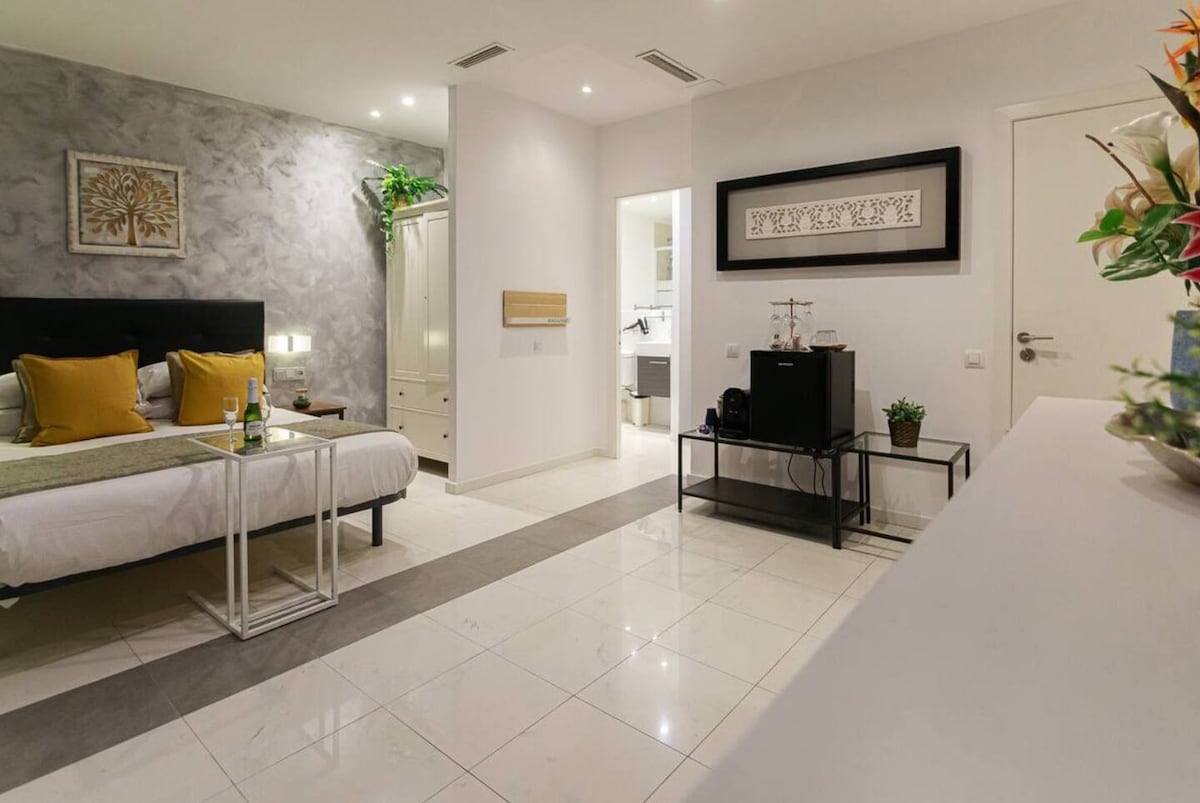 Igumbi elikahle elinegumbi lokugezela eliphrayivethi e-Las Ramblas
