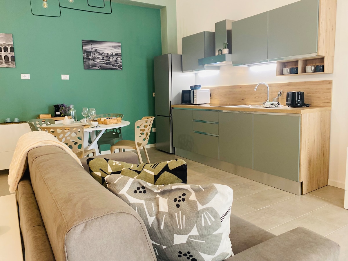 Ifulethi elihlonishwayo elingamamitha-skwele angu-150 elinefenisha elinekhwalithi ephezulu, ukuze ukwazi ukuhlala ndawonye nomndeni nabangane, okokuzithokozisa kokuzizwa okumangalisayo kwe-Verona ekhaya. Itholakala endaweni yamasu ngomzila eceleni kwe-Adige ekuyisa emfuleni we-Castelvecchio bese uyiwela bese ufaka isipiliyoni esimnandi sakudala esikuyisa esikhungweni somlando imizuzu engu-10 emangalisayo ngezinyawo.
