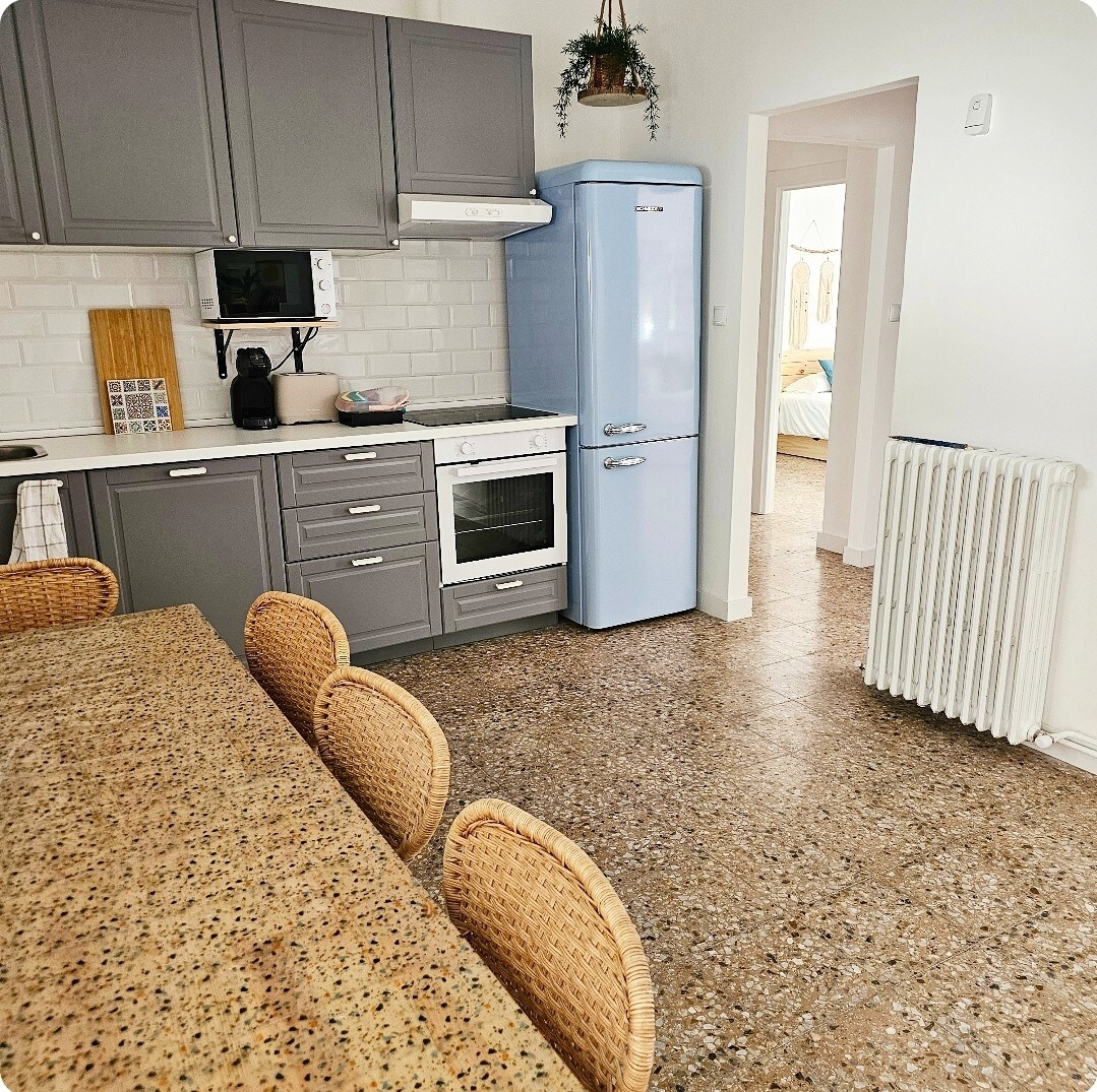 Ifulethi elingu-50 m2 elisesitezi sokuqala sesakhiwo esisendaweni ephakathi nendawo kodwa ethulile. Inazo zonke izinto zikagesi. Kusakazwe ephaseji, ikamelo elilodwa elinombhede ophindwe kabili (140x200 cm), indlu yangasese elilodwa, igumbi lokuhlala elikhulu elilodwa/ikhishi/igumbi lokudlela. Ukushisisa ngakunye. Umbhede owengeziwe uyatholakala (umbhede wosofa ophindwe kabili; 140x200 cm).