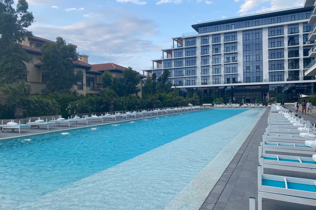 Jabulela i-Baku kusuka efulethini lethu elihle le-Boulevard View studio! Ukuhamba ngezinyawo okungu-5 kuya ku-Sea Front, kanye nokuhamba ngezinyawo okungu-10 kuya e-Deniz Mall kanye nemizuzu engu-5 ngetekisi eya enkabeni yedolobha. Ifakwe endaweni entsha ephephile enomsizi wesihambi, jabulela kalula ngesitolo esikhulu esesayithini esitezi esiphansi. Zitike ejimini/esikhungweni se-spa(akufakiwe). Ifulethi linegumbi lokulala eliyi-1, umbhede oguquguqukayo egumbini lokuphumula, neshawa yesimanje yokunethezeka.