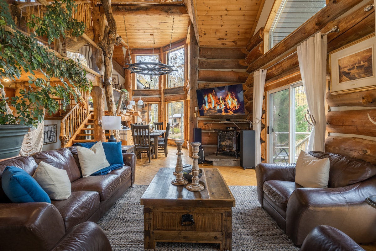 Yamukela ukuthula kwehlathi nobuhle bendlu eyakhiwe ngamapulangwe engungxantathu. Vala umhlaba wangaphandle futhi ujabulele ubuhle bazo zonke izinkathi zonyaka kule ndlu eyakhiwe ngamapulangwe ethokomele. Chitha izinsuku zakho uhlola imizila edabula amahektare angu-50 ezinkuni eziphrayivethi futhi ubusuku bakho buzungeze umlilo wangaphandle. Eduze nezitolo nezindawo zokudlela zasendaweni e-Haliburton Village (imizuzu engu-10 ngemoto). Ilungele ukuphumula kwabantu abashadile noma ukuvakasha komndeni. STR-24-00027