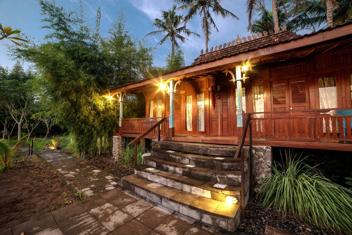 Jabulela ubuhle bokuhlala kwendabuko e-Joglo Retreat yendlu yendabuko yase-Javanese, eyakho kuphela yemibuthano yomndeni ekhumbulekayo. Indlu yethu yase-Joglo ilala kahle abantu abadala abangu-6-7 emagumbini amathathu, esendaweni ethulile. Kusukela ekuvukeni kuya emsindweni othambile wedolobhana kuya ekuhloleni izingadi ezivundile, le ndlu iqinisekisa ukuvakasha komndeni okungenakulibaleka. Ukunethezeka kwesimanje njengama-shower afudumele, i-Wi-Fi, nekhishi elinakho konke kuhlangana kalula kule ndawo yendabuko.