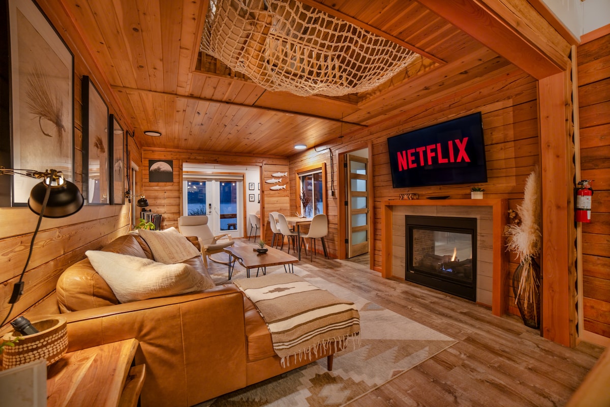 Indlwana ephrayivethi yasehlathini edizayinelwe ukuba ujabulele ukusa okunokuthula nobusuku obufudumele besitofu sezinkuni, imizuzu emihlanu nje ukusuka enkabeni yedolobha lase-Nelson. Khuphukela embhedeni omkhulu ophakeme oneqoqo lezincwadi ezikhethiwe, ungcebeleke ngasemlilweni, futhi ujabulele ubhavu wethu wamanzi ashisayo asemthonjeni wasezintabeni. Bhukha i-sauna eshiswa ngezinkuni (+$50) kanye nendawo yokuqabula ebanda kakhulu yezinkathi zonyaka ukuze uphumule ngempela e-Kootenay. Inokuthula, ayinazo izinto eziningi, futhi ifihlekile ezihlahleni — kodwa iseduze nemizila, indawo yokushushuluza, nedolobha.