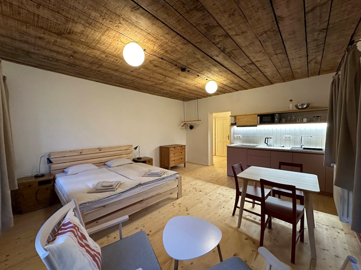 Tento prostorný rodinný apartmán se nachází v samém srdci malebného historického centra Českého Krumlova a je ideálním místem pro rodiny nebo menší skupiny. Nabízí kombinaci komfortu a útulné atmosféry, která vás okamžitě pohltí. Poloha apartmánu je ideální pro prozkoumávání města – všechny hlavní památky, restaurace a kavárny jsou doslova za rohem.