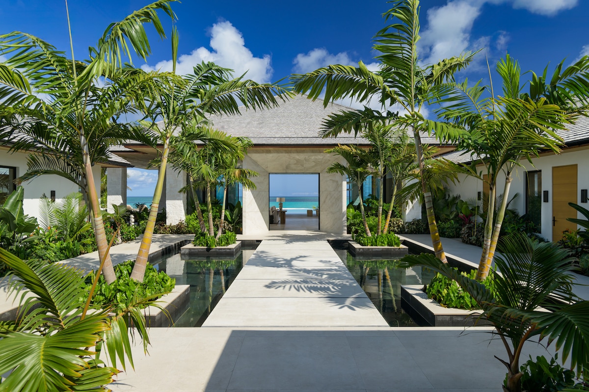Situated by oceanfront with uninterrupted views of the turquoise waters, La Mer West offers luxury villa rentals in Sapodilla Bay, Providenciales. The home provides a European touch to modern Caribbean architecture, unique to rental villas in Turks and Caicos Islands. This well-appointed, staffed villa is situated right on the ocean’s edge and offers a seamless blend of indoor and outdoor living across 7,500 square feet.