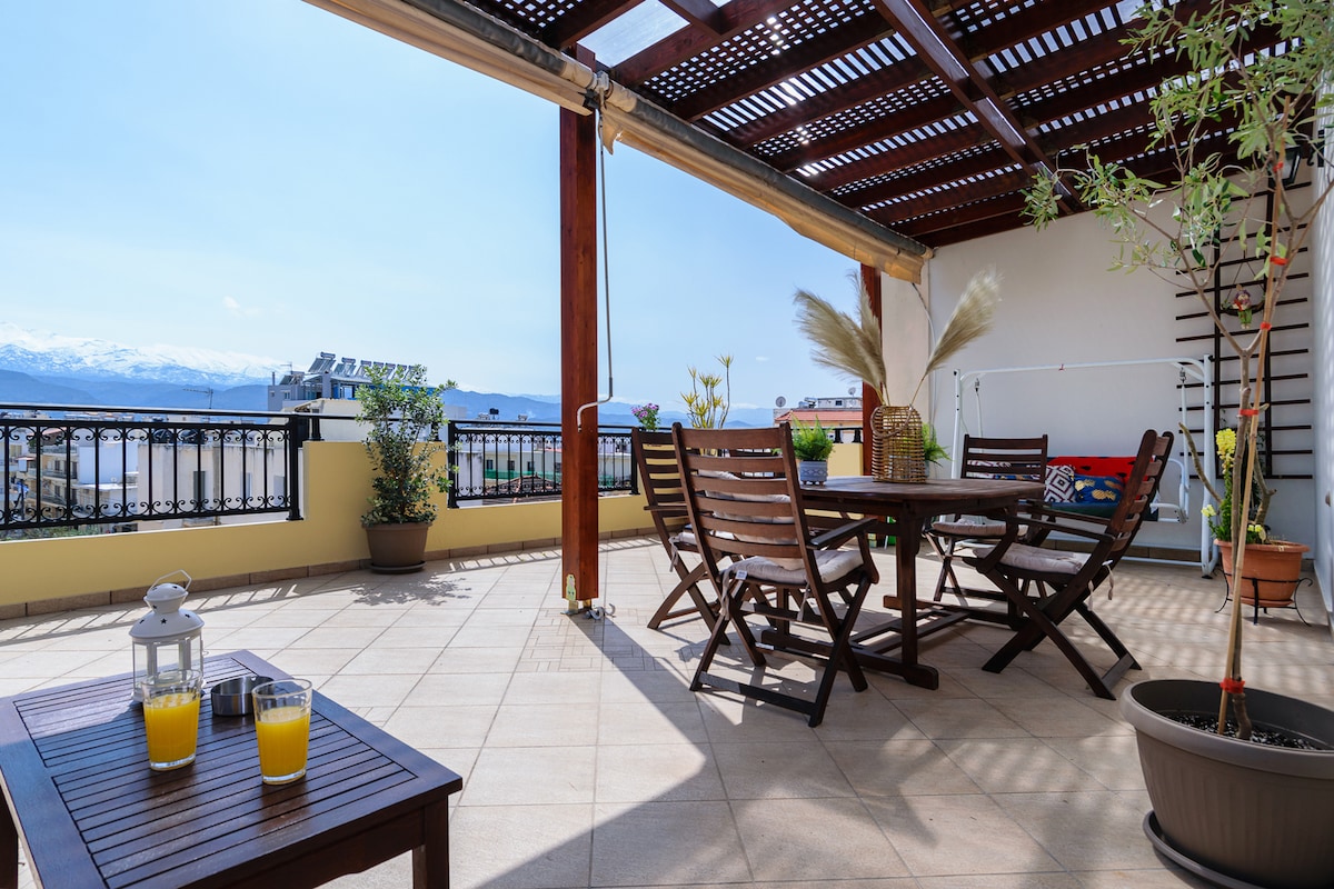 Experience the charm of Chania from our cozy and inviting penthouse apartment, located on the coast of Chania Town (Koum Kapi). With a prime location just steps from the city center and the sea, you’ll be surrounded by art, culture, and beautiful parks. Enjoy stunning views of the sea and the comfort of a well-equipped space. Perfect for couples or families, this retreat offers the best of both worlds – a peaceful stay with easy access to the lively charm of Chania.