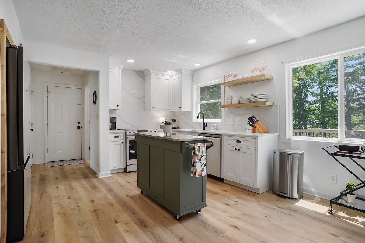 Iholide elihle eliyingqayizivele elisogwini loMfula i-Cuyahoga. Kungakhathaliseki ukuthi uyayithanda imvelo nengaphandle noma ufuna nje ukuphumula “endlini enhle ngempela”, le ndawo ingeyakho! Konke okudingayo ku-Hot Tubbing, i-Kayaking, i-Canoeing, i-Relaxing, ne-River Watching kulindile. Uma ngaphandle kungeyona into yakho, leli khaya elihle line-River Views ebabazekayo nesimo esihle salo! I-Open Concept ine-Upscale Modern Design ene-Nature Safari Vibes kanye ne-Earthy Cozy Interiors.