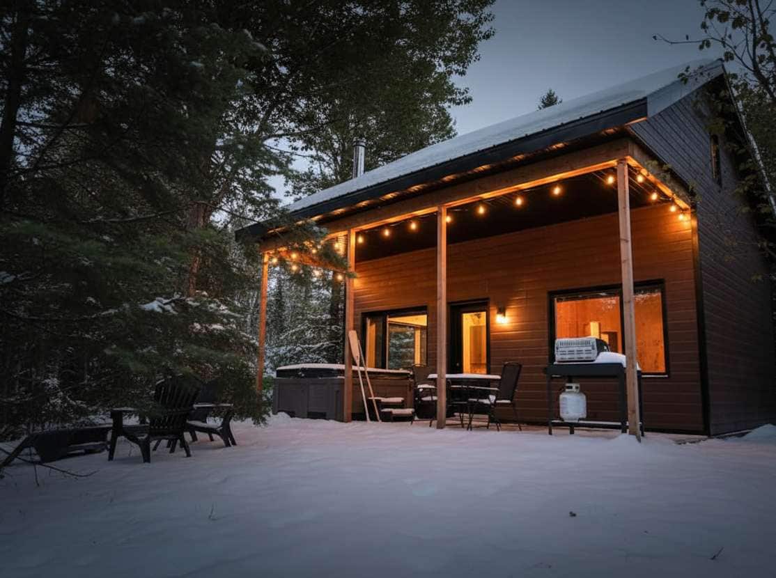 Indlu yeholidi eyakhiwe ngokhuni encane yase-Scandinavia yabantu ababili etholakala kahle ukuze bajabulele izindawo ezikhangayo zase-Charlevoix. Inesifunda esishisayo (ubhavu oshisayo, i-sauna, i-hammam) Isondelene kakhulu futhi maphakathi namahlathi, umbono ubheke umfula omkhulu nezintaba ngebanga. Yonke imishini yesimanje ikhona futhi ukunethezeka kuyi-A/C ngokuphelele kanye nendawo yomlilo yangaphandle. Umklamo womqondo ovulekile waklanyelwe okokuzithokozisa okucwebezelayo emvelweni: amafasitela amakhulu, i-shower ye-panoramic. Ukufinyelela ngomgwaqo wangasese ngo-500 m.