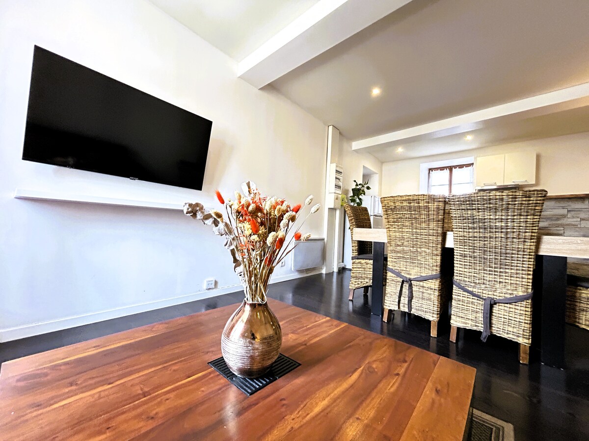 Appartement lumineux de 57 m² en duplex, au 2ème étage sans ascenseur, en plein cœur de la zone piétonne du Vieux Valence. Il est situé à quelques minutes à peine de la gare SNCF ou du Pôle Bus. Sur la Place des Clercs, venez vous détendre dans ce 3 pièces conçu pour votre confort. Vous y trouverez au premier étage une cuisine ouverte sur séjour, une chambre avec lit double et une salle de bains avec douche, vasque et toilettes. A l'étage, 2 lit simple et un espace de travail.