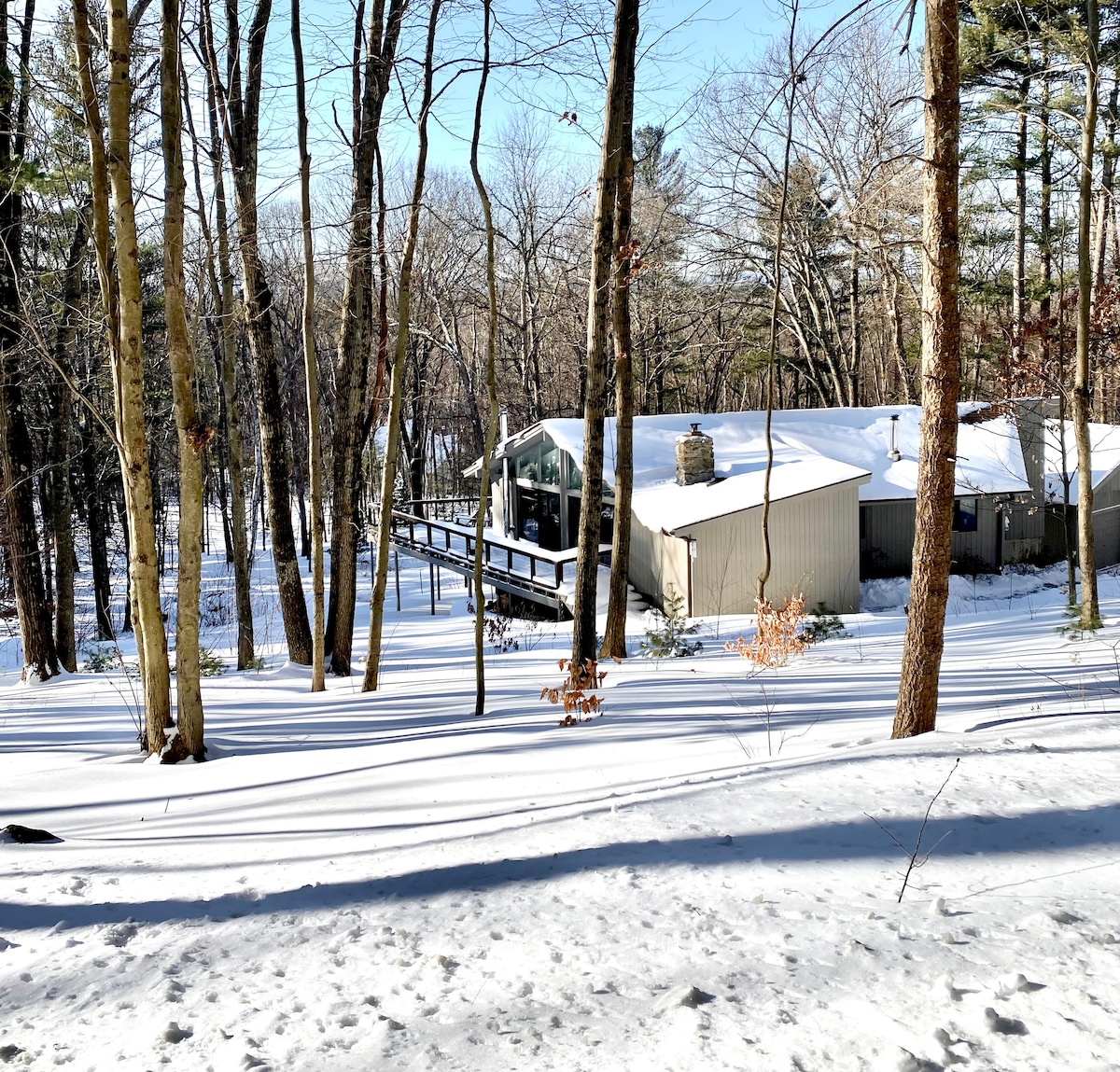 Tucked into the slope of Vaughn Hill on 3 wooded acres, the entire lower level of our home is yours to enjoy. Cozy 2-bedroom unit with “the BEST BEDS at an Air BNB ever!" to quote one guest. Visit Nashoba Valley Winery (5 min away), get coffee at Harvard General Store (8 min), go apple-picking at a local orchard, or hike Vaughn Hill trails. *Our backyard wood-fired sauna is available by request at $20 per firing*
