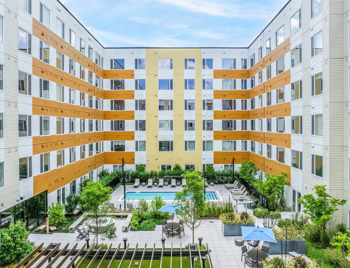 Ikamelo elivulekile nesimanje elinamakamelo angu-2, ifulethi elinamakamelo angu-2 e-Chelsea, MA-ukuhamba nje okufushane ukusuka enkabeni yedolobha i-Boston! Le ndawo enefenisha enhle ilungele kokubili izihambi zebhizinisi nezokungcebeleka. Jabulela amasevisi anhlobonhlobo kanokusho ahlanganisa indawo yokubhukuda enesitayela se-resort, ijimu enakho konke, inkundla ye-basketball, indawo yokuphumula yabahlali, uvulande wangaphandle, nenkundla ye-pickleball. Ukupaka kwamahhala esayithini nezithuthi zomphakathi eziseduze kwenza ukuhamba kube nomoya. Phumula, sebenza, futhi udlale ngokunethezeka nangesitayela!