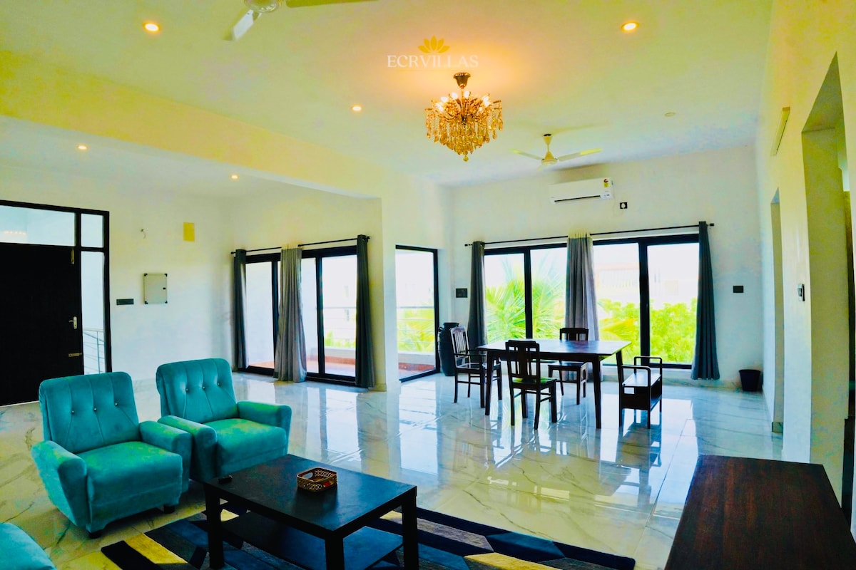 Ikhaya lakho leholide elihle kakhulu e-Chennai elibheke i- "Bay of Bengal" langa Siyakwamukela ku-Villa yethu enamakamelo amahlanu, kanye ne-Penthouse, emizuzwini emihlanu ukuya ebhishi. Isethingi ekahle eyenzelwe ukusiza ukuphumula, ukunethezeka nokuzijabulisa umndeni nabangane abaningi. Ngokusobala, i-Pent-house inikeza umbono omuhle kakhulu we-Bay of Bengal ocean. Yakhiwe ngemabula enhle kakhulu, izinkuni zekhwalithi ephezulu kanye nokufaneleka kwase-Germany kwamanye amazwe ukuze kuqinisekiswe ukuthi izivakashi ziyijabulela kakhulu imvelo.