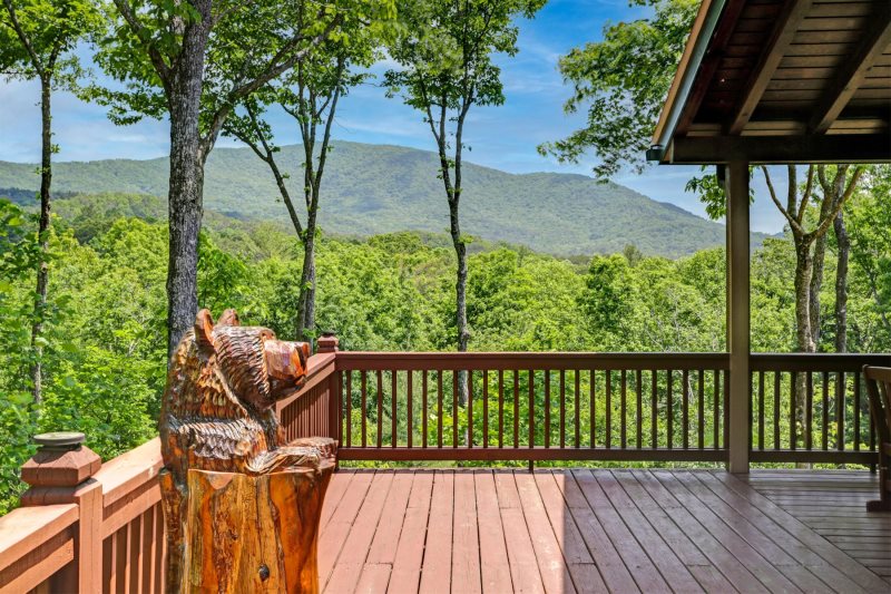 Indlu eyakhiwe ngamapulangwe ephrayivethi, i-Deck and Views Blue Ridge Mountains