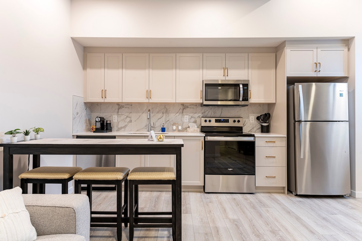 Zithokozise kule suite yesivakashi esiyimfihlo esiyimodemu esiqhelelene ngemizuzu engu-3 kuphela nechibi elihle, inkundla yegalofu, ibhishi elikhulu nezindawo zokudlela zasendaweni. Imizuzu engu-20 kuphela ukusuka e-Calgary Airport nase-Downtown Calgary, ilungele kokubili ukuphumula nokusebenziseka. ✔ Kulala abantu abangaba ngu-6 | Imibhede engu-3 & Indlu yokugezela eyi-1 ✔ Ikhishi elinakho konke okudingekayo elinestovu nomshini wekhofi we-Keurig ✔ Amakamelo okulala anethezekile ✔ Igumbi lokuphumula elithokomele lesimanje elinophahla oluphakeme ✔ I-TV ene-Netflix ne-Amazon Prime ✔ Ukudla kwebha, i-Wi-Fi enejubane elikhulu nendawo yokuhlanza impahla efulethini ✔ Indawo yokungena ephrayivethi