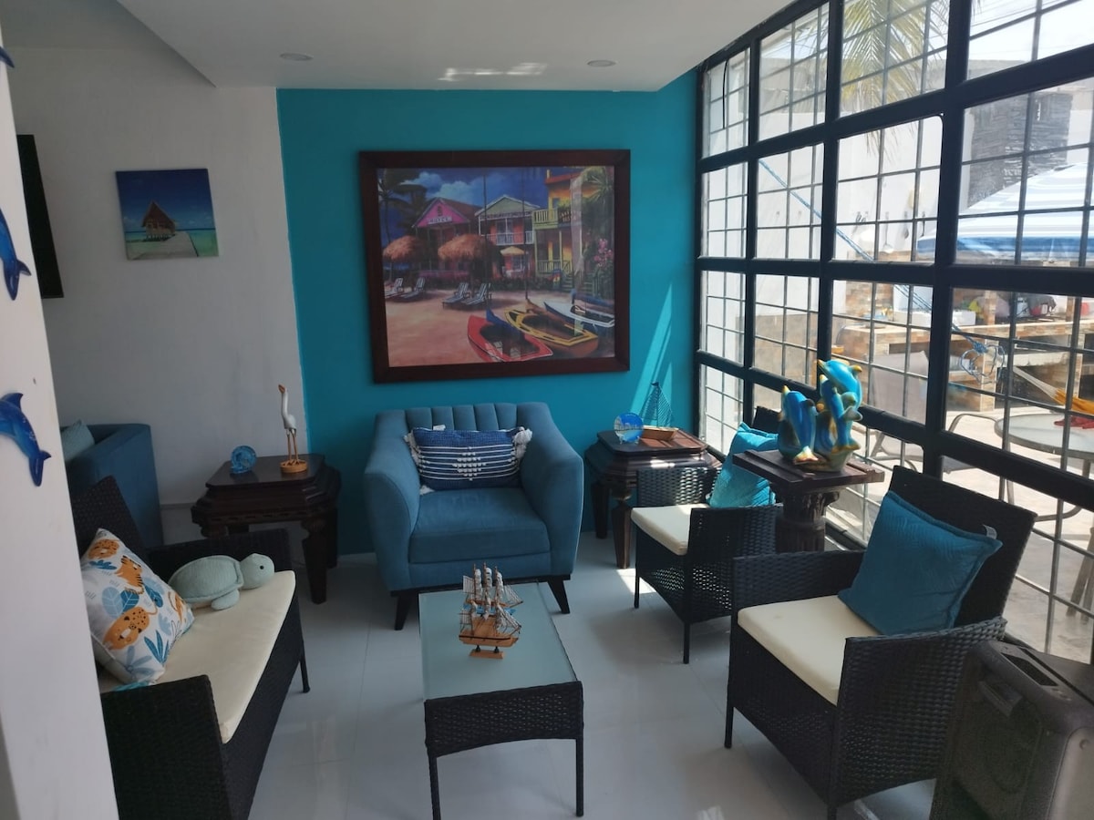 I-villa ethokomele nethokomele, amabhulokhi ambalwa ukusuka olwandle lwase-Salinas, ngaphakathi kwedolobha elinendawo yokubhukuda enkulu yabantu abadala nezingane, i-guardiania 24/7, indawo ethulile nephephile, phambi kwemakethe lapho ungathenga khona ukudla okusha Amagumbi ane-A/C (ahlukanisiwe) Izindlu zokugezela ezinamanzi ashisayo I-inthanethi I-TV enamashaneli abukhoma, uchungechunge nama-movie Ikhishi elinakho konke Indawo ye-Bbq I-Parqueadero yezimoto ezingu-2 Kuhle ukujabulela izinsuku zakho ezingasebhishi nomndeni wakho noma iqembu labangane Ama-Salinas akulindile