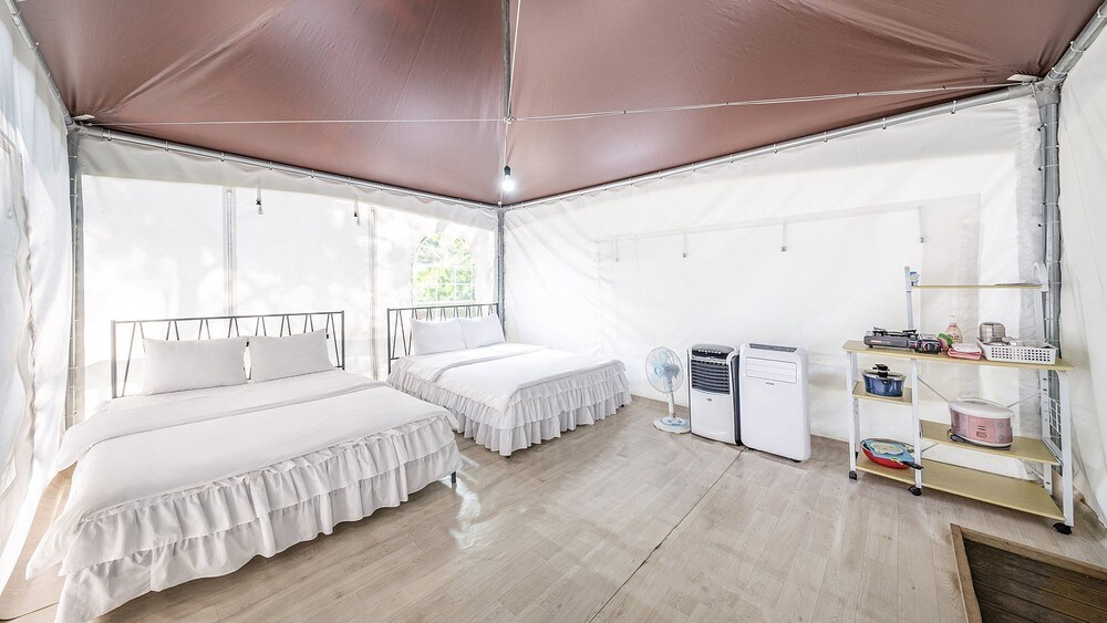 I-Hwaseong Refresh Glamping & Caravan eduze ★ ne-Seoul ★ Itholakala e-Hwaseong-si, e-Gyeonggi-do, i-Refresh Glamping & Caravan inikeza indawo ekhethekile yokuphumula emvelweni. Izindawo zokukhempa nama-caravan: Sinamakamelo ahlukahlukene emindeni, abangane, nabathandi abangawajabulela. Igumbi ngalinye line-barbecue yalo etholakalayo, futhi kune-mart yemizuzu engu-3, ngakho ungathenga kalula izinto ezidingekayo. Izindawo zezingane: Sinendawo ye-trampoline ukuze izingane zakho zikwazi ukudlala ngokuphephile. Izindawo ezingaphandle ezivulekile nezindawo zokubilisa inyama: Indawo enkulu yangaphandle inendawo yokosa inyama, futhi indawo enhle ezungezile ithuthukisa ukuphulukiswa. Ukufinyelela okulula: Kutholakala ihora elilodwa ukusuka e-Seoul, kulula ngawo wonke umuntu ukuvakasha. Izindawo ezihlukahlukene: Igumbi ngalinye line-TV, i-air conditioning, umbhede, itafula lokudlela, ifriji, ipuleti elishisayo, izinto ezisemqoka zegumbi lokugezela, i-Ott, i-inthanethi, ukufudumeza, izitsha zokupheka, isicishamlilo, isiqwashisi sentuthu, i-alamu ye-carbon monoxide, njll. ukuze ujabulele uhambo oluthokomele noluphephile.