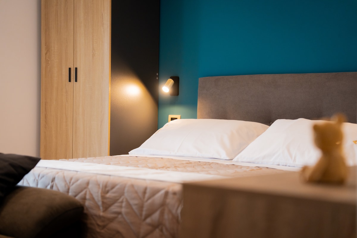 Camera matrimoniale con balcone, luminosa e confortevole, dotata di bagno privato, WiFi, TV e aria condizionata. Ogni mattina vi accoglieremo con una colazione genuina e curata, servita sulla terrazza con vista, per iniziare la giornata nel modo migliore. A pochi minuti dall’hotel, troverete le nostre splendide spiagge Bandiera Blu, caratterizzate da fondali bassi e acque cristalline.
