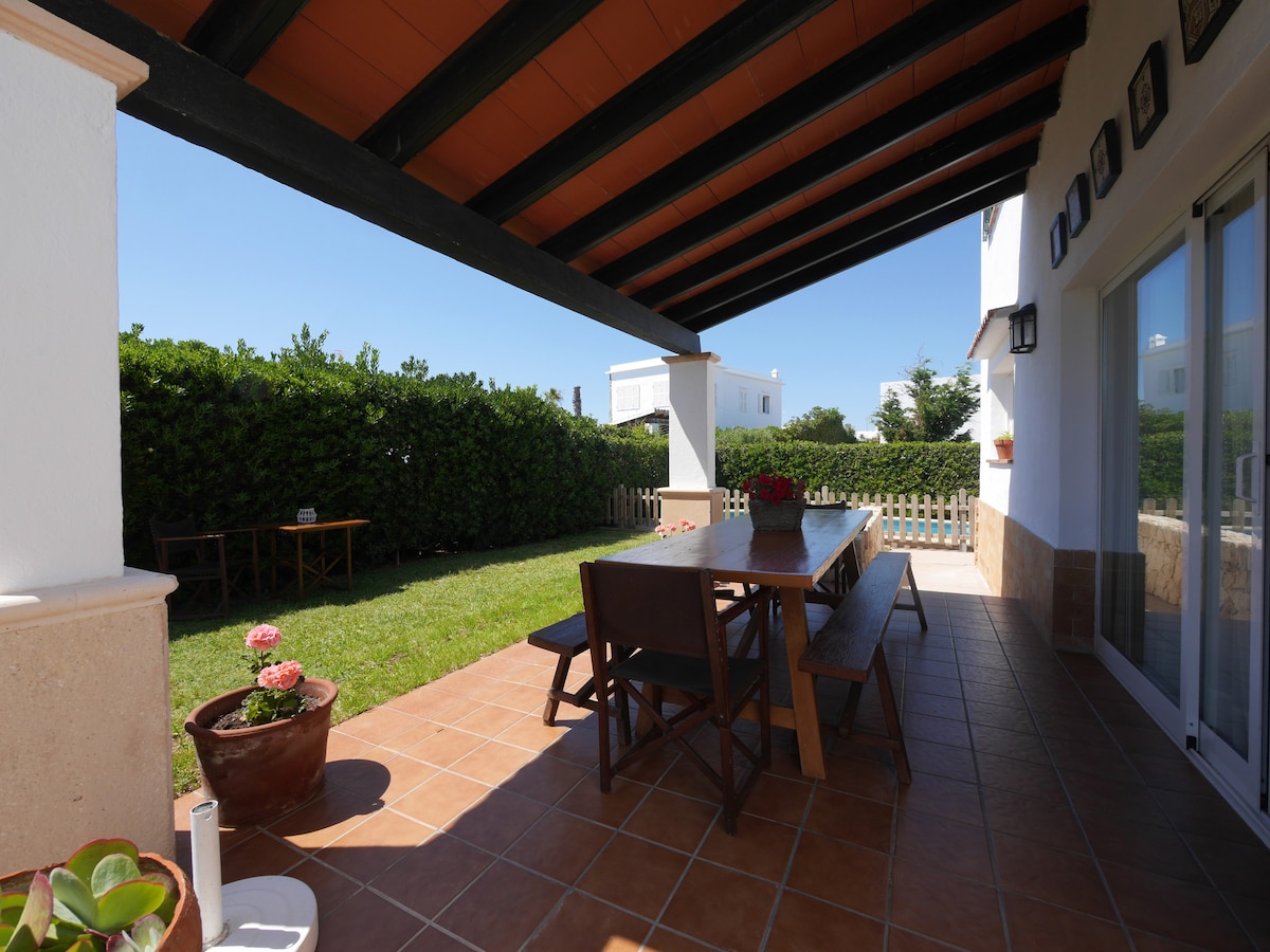 Indlu ejwayelekile yase-Menorcan, ezimele, enengadi nendawo yokubhukuda, eceleni kwebhishi elihle lase-Cala Blanca e-Ciutadella de Menorca. Ilungele abantu abayisithupha, inamagumbi okulala amabili, umbhede owusofa, igumbi lokuphumula, igumbi lokugezela, i-terrace nekhishi elinakho konke. Itholakala endaweni ekahle yokuchitha amaholidi akho futhi ujabulele isiqhingi. Ukuthenga (izitolo ezinkulu ezingu-2) kuqhele ngo-50m. Amasevisi ebhasi eduze nendlu ukuze aye kwamanye amabhishi esiqhingini. Kuyamangalisa!