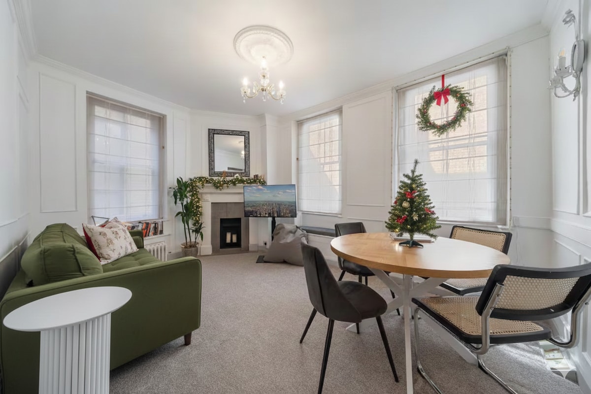 📍Isenkabeni ye-Marylebone, imizuzu engu-5 nje uhamba ngezinyawo usuka e-Baker Street Station nemizuzu engu-2 usuka e-Marylebone Station, leli fulethi elisesitayeleni elingu-1BR linikeza inhlanganisela ekahle kakhulu yemfudumalo namasevisi anamuhla. Inakho konke, izinto zasekhishini, umbhede othokomele, nombhede onosofa, inikeza indawo enokuthula phakathi kokungcebeleka kwedolobha. Indawo evulekile, ekhangayo ilungele ukuphumula, izitebhisi ezisuka ezindaweni ezidumile ezinjenge-Sherlock Holmes Museum ne-Madame Tussaud's🌟💖