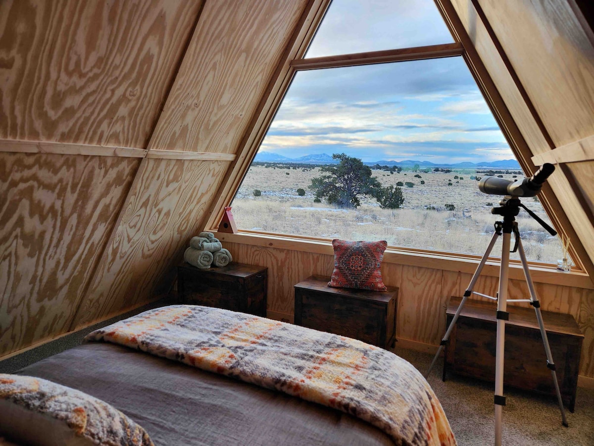 Siyakwamukela ekhaya lakho kude nasekhaya! I-A-Frame yethu ethokomele nenokuthula enama-acre angu-10 ebuka i-A-Frame ayifani nanoma yikuphi ukuqasha nemizuzu engu-25 kuphela ukusuka e-Grand Canyon. I-A-Frame inikeza: -25 imiz ukuya e-Grand Canyon. -35 imiz ukuya edolobheni lase-Williams. -Iwindi eliphakeme elingamamitha angu-10 elinezindawo ezinhle. -I-Propane grill, i-cooler, nomgodi womlilo wokuzijabulisa kwangaphandle. -Ukushisisa kwangaphakathi okunikeza izikhathi ezithokomele unyaka wonke. -1 umbhede omkhulu nomatilasi ababili abasongwayo (abalungele izingane ezitholakalayo uma zicelwa).