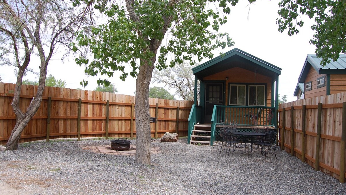 10 isandla eyakhiwe ngamapulangwe endaweni entsha yokukhempa, nje 37.5 amamayela empumalanga ye-East Gate of Yellowstone. Izindlu ezakhiwe ngamapulangwe zinemibhede ye-log kanye nomatilasi abasezingeni. Izindlu ezakhiwe ngamapulangwe zivumela kuphela umkhawulo wabantu ababili ngamunye kuzo, imibhede emide engu-2 eyengeziwe endlini ngayinye eyakhiwe ngamapulangwe. Izindlu zokugeza zinamagumbi anamashawa aphrayivethi. Siphinde sibe nompheme we-800 sq foot ukuze sibuyele emuva futhi sijabulele ukubuka , ngezinye izikhathi i-elk idla eduze. Siphakela ikhofi netiye, kanye nokudla okulula okumbalwa njalo ekuseni ukuze sijabulele usuku lwakho
