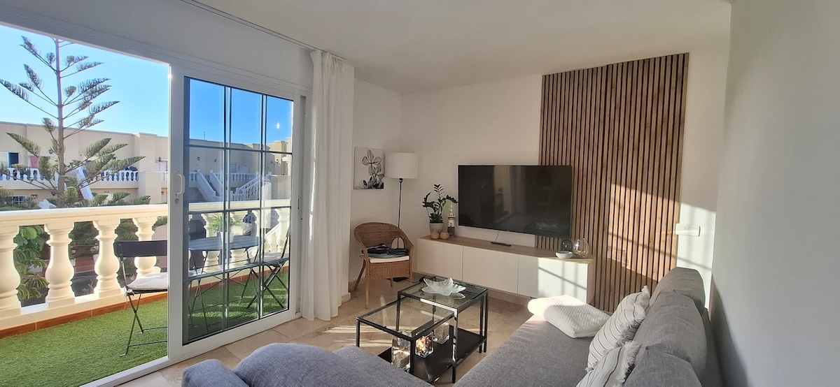 Ifulethi elikhanya kakhulu, elisedolobheni elihle futhi elithulile lase-Tarajalejo. Le ndlu itholakala ngaphansi kwamamitha angu-150 ukusuka ebhishi futhi inhle kakhulu. Amakhilomitha angu-3 kuphela ukusuka e-Oasis Park nemizuzu engu-10 ukusuka emabhishi esihlabathi esimhlophe. Indlu iqukethe igumbi lokuhlala/lokudlela elinosofa we-air conditioning nekhishi elihlanganisiwe elinakho konke, kokubili ukuhlala kwesikhashana nokuhlala isikhathi eside, ikamelo lokulala elinemicamelo nomatilasi wekhwalithi, ithala elinelanga elinezindawo ezinhle.