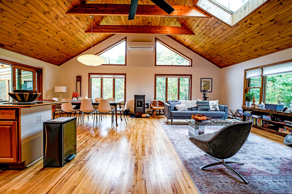 Kusenkabeni ye-Catskills futhi uhamba amahora angu-2.5 ngemoto usuka e-NYC, ubalekele endaweni ekahle kakhulu yasekwindla lapho ungaphinde uxhumane khona nemvelo futhi ujabulele ubuhle obunokuthula benkathi yonyaka. Leli gugu elingokomlando libuyiselwe muva nje, lishada nefa lalo lokugaya elinokunethezeka kwesimanje, okuhlanganisa i-thermostat ye-Nest, izipikha ezihlakaniphile, ukungena ngaphandle kwesikhiye, ne-wifi esheshayo. Iphosti yasekuqaleni evulekile nokwakhiwa komqadi kanye nomklamo ophefumulelwe wase-Scandinavia kwenza kube nomoya oyingqayizivele othokomele.