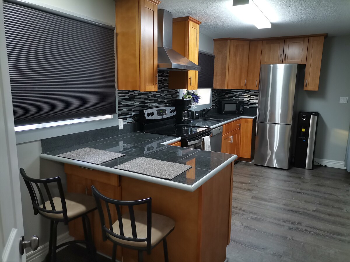 Ivulekile, Ihlanzekile, ukuphawula okuhle kakhulu, Ayikho imali yokuhlanza! Ikamelo ELIKHULU eligcwele eligcwele elinombono wezigidi zamadola amachibi amabili, idolobha nesigodi. Siphila ezingeni eliphezulu. Ujabulela izinga lokuhamba ngezinyawo ukuya egcekeni elihle NOKUBUKA INDAWO. Lena yindawo ekahle kakhulu phakathi kwe-Calgary ne-Vancouver. Eduze nezitolo zewayini, izinkundla zegalofu, imizila yamabhayisikili, amabhishi nokunye. Imizuzu engu-15 ukuya endaweni yokushushuluza eqhweni esezingeni lomhlaba. Kuthule futhi KUHLANZEKE kakhulu!