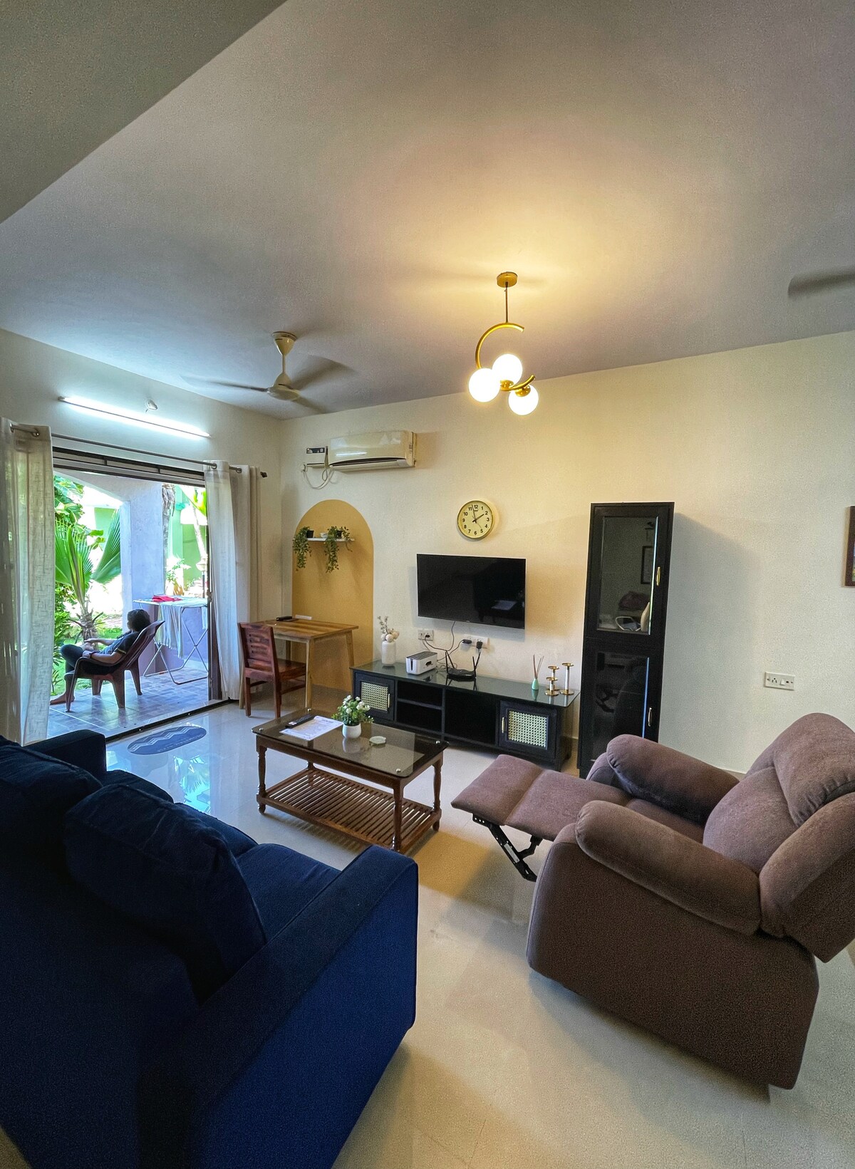 Siyakwamukela @casaregalgoa! Hlala ku-1BHK yesimanje okuwuhamba lwemizuzu engu-5 ukusuka e-Colva Beach. Jabulela ukubuka okuhle okungaphazamiseki, indawo yokubhukuda eqabulayo, nendawo yangaphakathi ethokomele eceleni kweMarriott Colva. Ama-café, izindawo zokudlela, nendawo yokuma kwamatekisi konke kuseduze. Izilwane ezifuywayo ziyamukeleka futhi ilungele imibhangqwana, imindeni, noma abasebenzayo — imizuzu engu-20 kuphela ukusuka esiteshini sase-Madgaon kanye no-40 ukusuka e-Dabolim Airport. 🌴✨