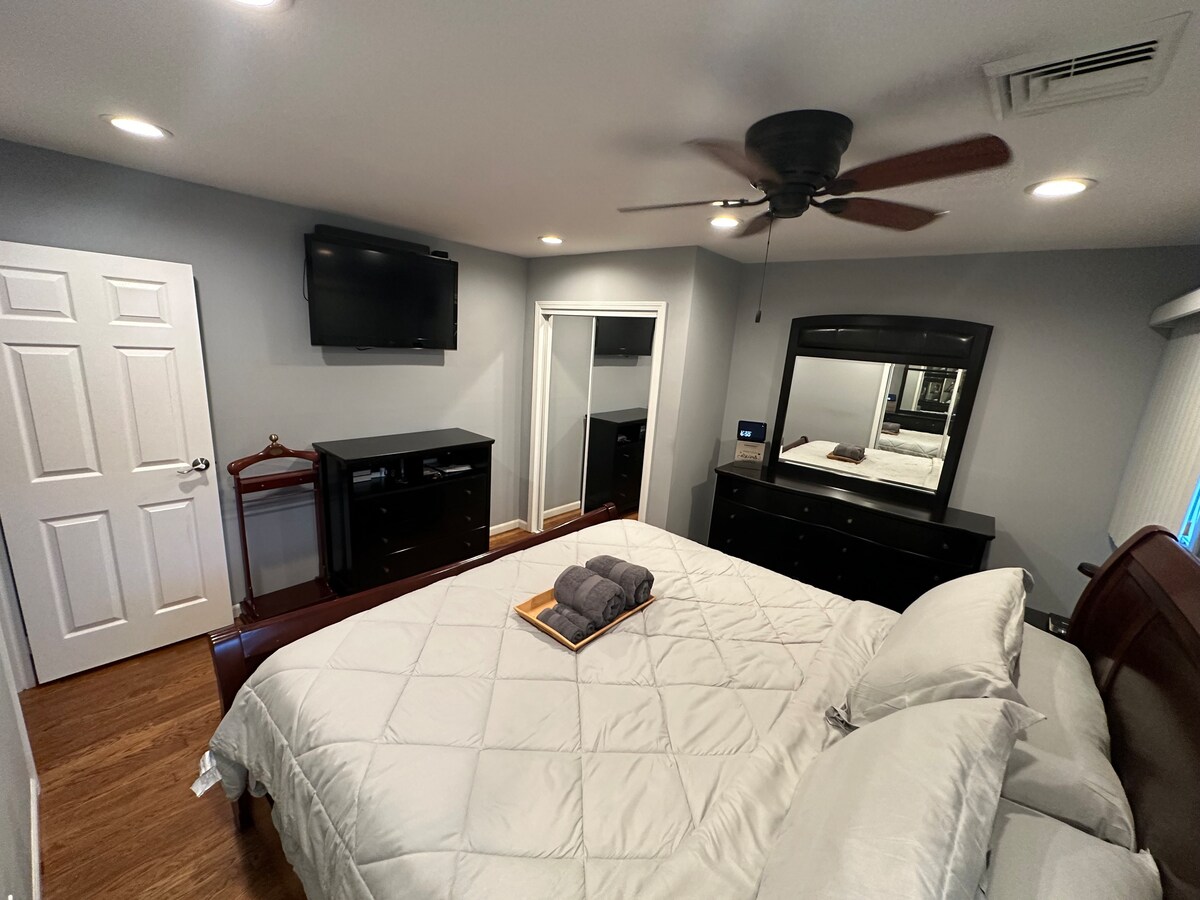 Luxury ENTIRE private first-floor one-bedroom apartment with separate entrance (NOT a basement). King bed, fast Wi-Fi, workspace, modern kitchen, cozy living room, en-suite bath, and two 50" smart TVs. Quiet, safe, centrally located. Summer access to shared backyard with pool, BBQ & outdoor dining. Year-round hot tub with massage jets. Self check-in with private code.