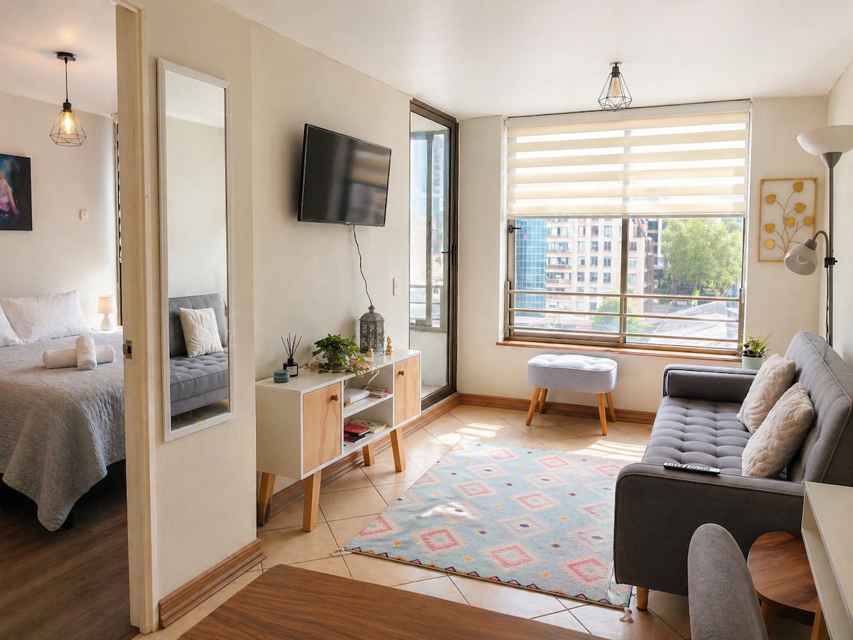 Disfruta de nuestro estudio en el corazón de Concepción, cerca de universidades, transporte, centros comerciales y restaurantes. Ideal para dos personas, el departamento incluye cama de dos plazas, cocina equipada, baño con tina, smart TV y mesa para trabajar/comer. El edificio ofrece gimnasio, sala de coworking, sala de entregas, lavandería, quinchos panorámicos y salón gourmet. ¡Conveniencia y confort en una ubicación central! No hay estacionamiento particular de la propiedad.