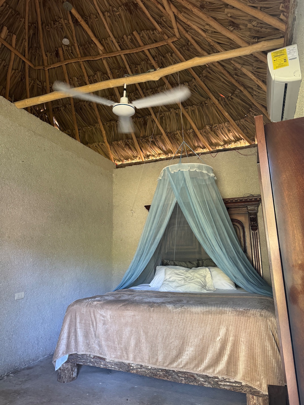 Cabaña con cama King, wifi de alta velocidad, estacionamiento, baño con agua caliente, desayuno incluido. Ven y descansa en nuestra cabaña, disfruta la noche con una grandiosa cena o desayuno, puedes disfrutar de un previo de Calakmul.