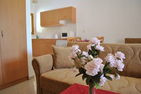 The apartment 10 is one of some in villa litsa, has one doublebedroom , balcony , privacy bathroom, livingroom and small kitchen in,is aircontitioning and there is free wi-fi . There is share swimmingpool with zacuzzi, garden with share barbeque, private parking. we are there for you in the morning , and we help you with any question you have or to make a trip plan in the islant.