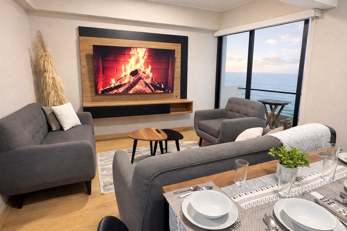 Ifulethi lethu lingenye yezimbalwa endaweni enokubukeka okuhle okuqondile nokubukeka kwe-Pacific Ocean. Jabulela ukuthula komsindo wolwandle nokushona kwelanga okumangalisayo. Ithokomele, inokukhanya okwanele futhi ihlotshisiwe. Ikhishi linakho konke okudingayo ukuze uhlale kahle. Ifulethi line-WiFi enamandla ne-Smart TV engu-02 enekhebula. Lesi sakhiwo sinezindawo ezihlanganyelwayo; izindawo zokubhukuda ezingu-02: (abantu abadala nezingane), ama-grill, i-lounge bar, igumbi lokuhlangana, ijimu nendawo yokugijima.