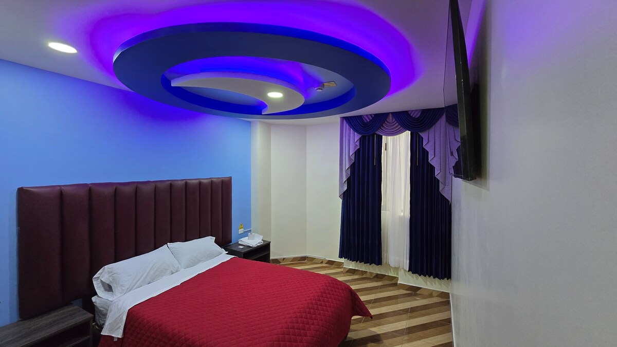 Woza uphile ngamakhaza kunanini ngaphambili, ujabulele ubuhle besimo sezulu esibandayo esizungezwe izindawo ezinhle zase-Andean, egumbini lethu eliphrayivethi, elifanele abantu abahamba ngebhizinisi noma izivakashi. Itholakala ehhotela eliseduze nenkaba yedolobha, uzokwazi ukufinyelela kalula ezindaweni zokudlela, ezitolo nasezindaweni ezithandwayo. Ikamelo linegumbi lokugezela eliphrayivethi, i-WiFi enejubane eliphezulu, i-TV, namanzi ashisayo. Ngaphezu kwalokho, sikunikeza isevisi yokudla okulula ukuze ujabulele ukudla okulula ngaphandle kokuphuma ekamelweni lakho.